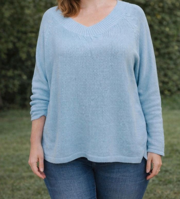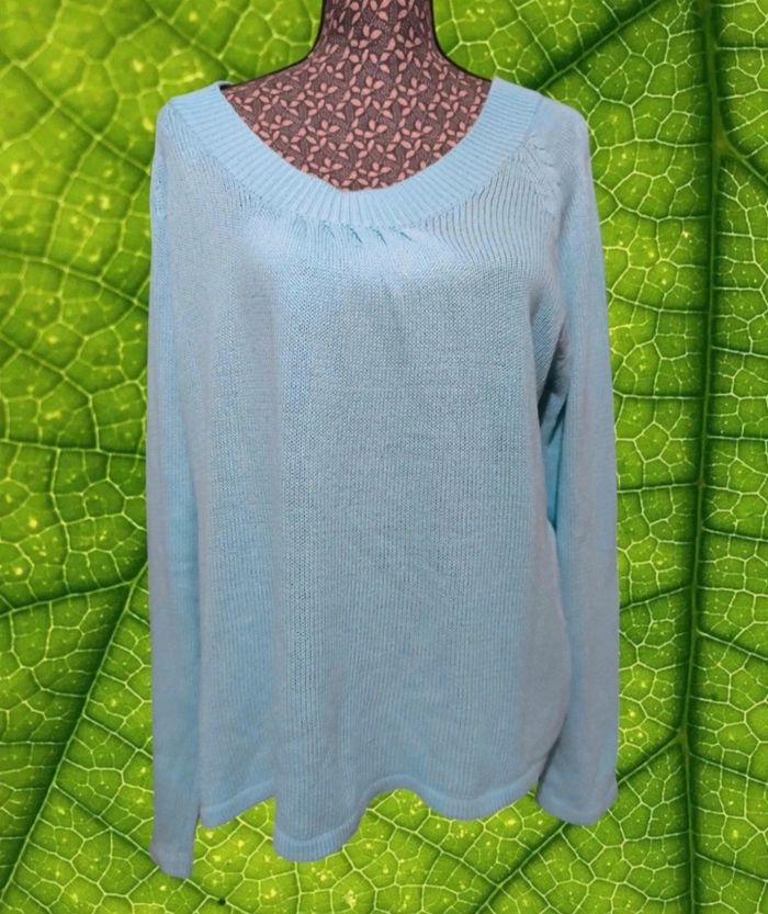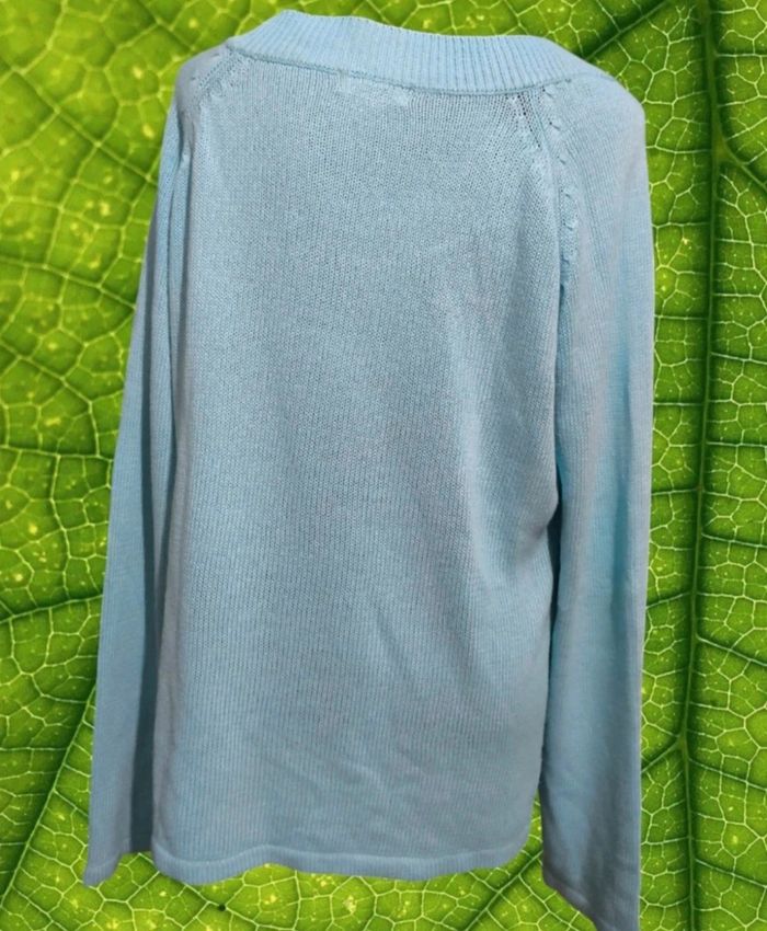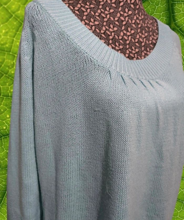 Vend un pull légèrement bouloche. Bleu turquoise. Marque Clara Vitti Taille 46/48