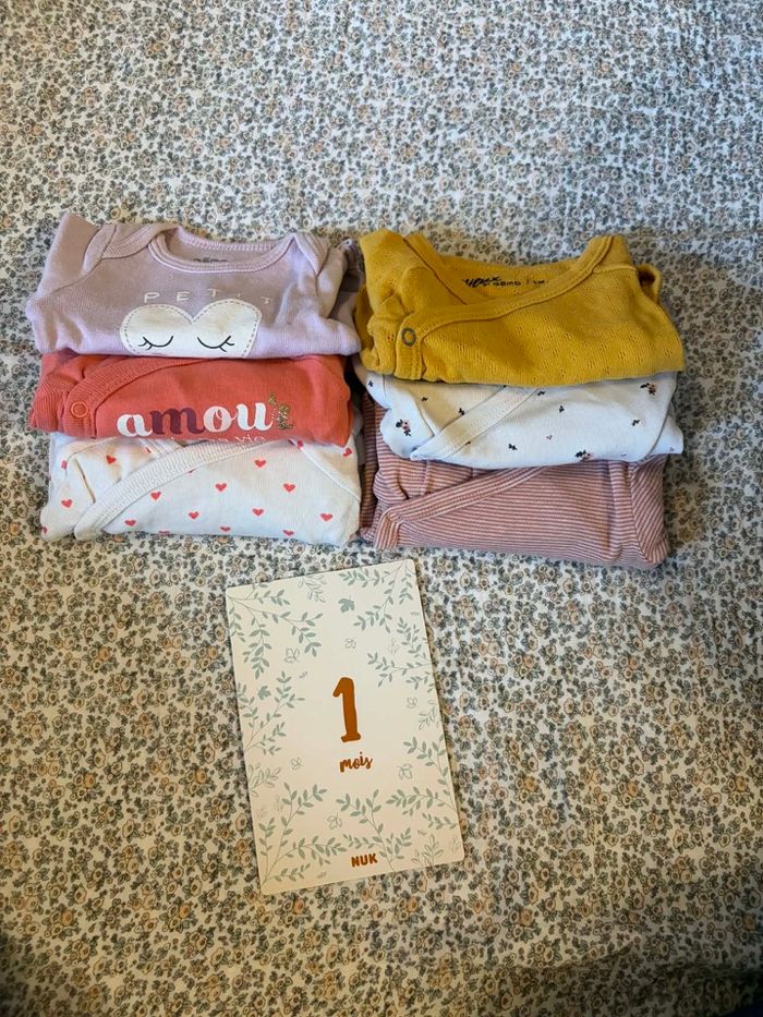 Lot bodies garçon manches courtes/longues- 1 mois - Parfait état