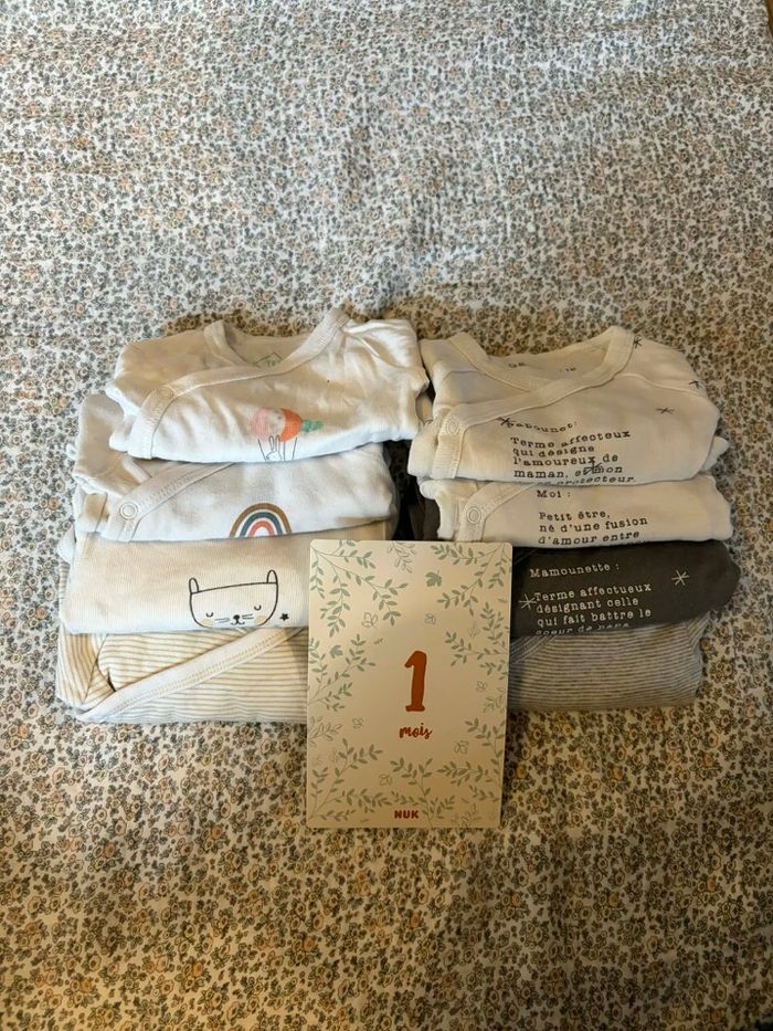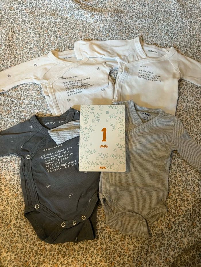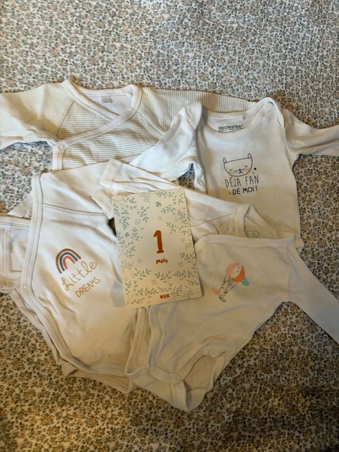 Lot 3 bodies manches longues 1 mois - Kiabi - comme neufs