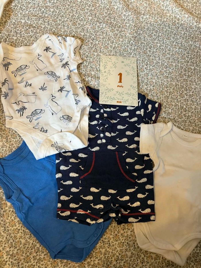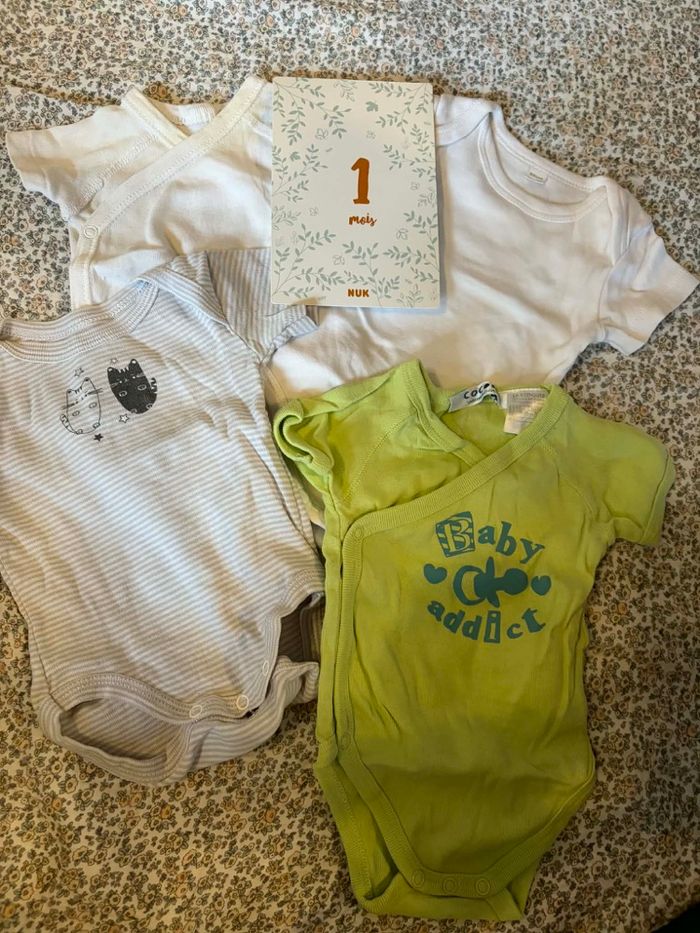 Lot bodies garçon manches courtes/longues- 1 mois - Parfait état