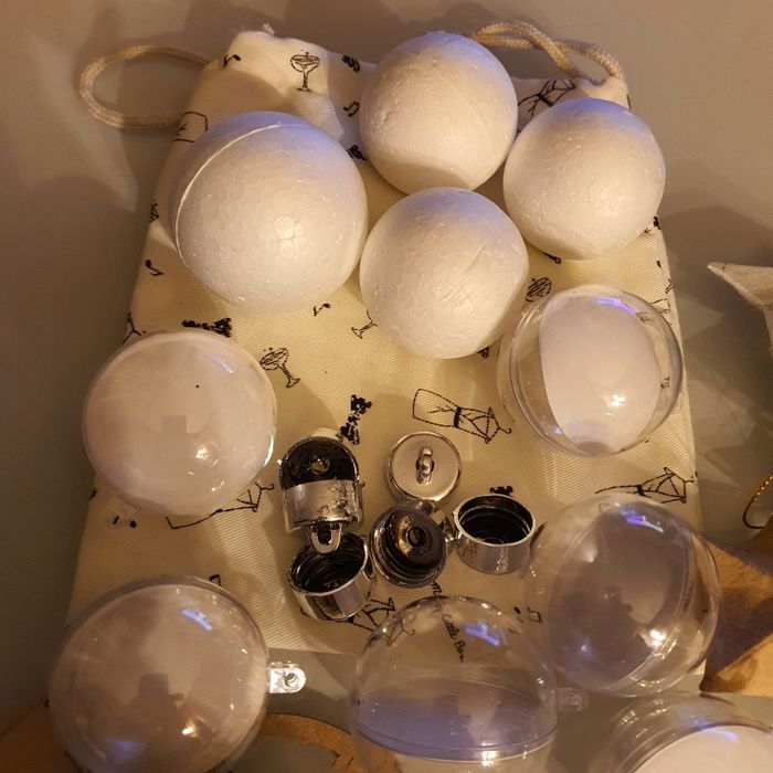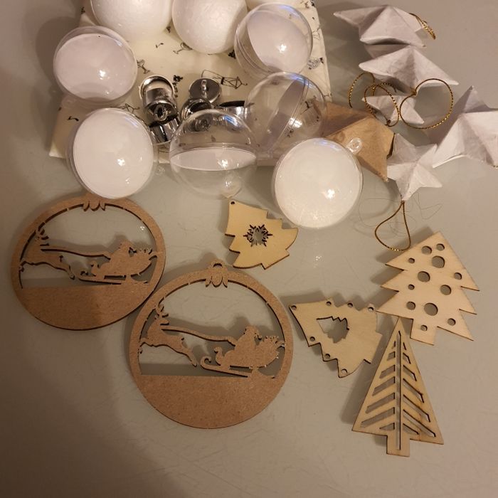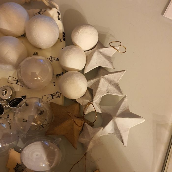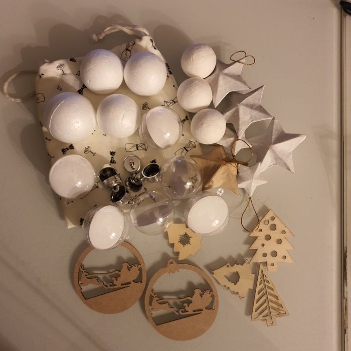Lot de + de 20 formes, en bois, boules en plastique, boules en ouate, boules polystyrène, Etoiles en papier maché à décorer État neuf