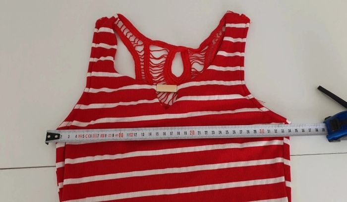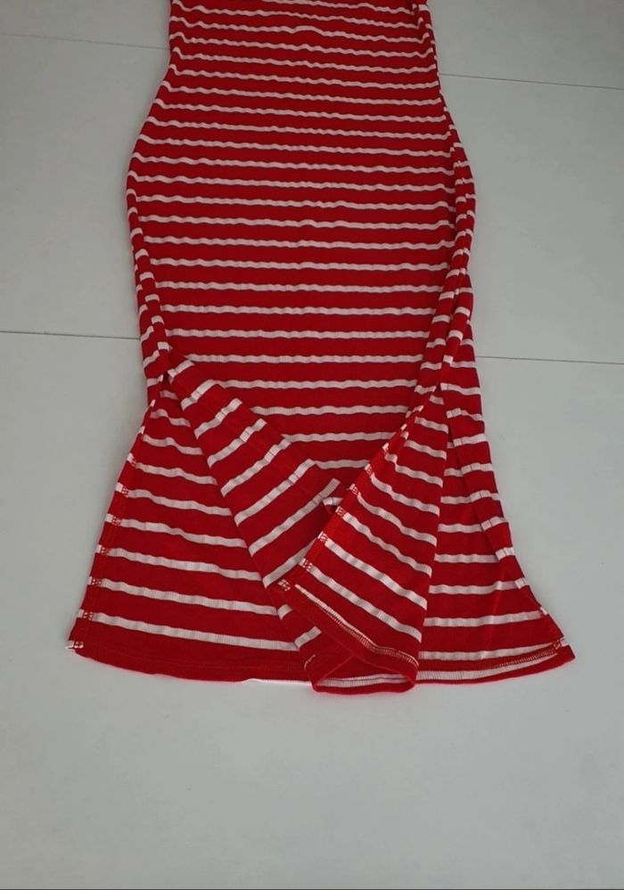 Je vends cette robe longue rayée rouge et blanc, parfaite pour un look décontracté et intemporel. Une pièce confortable et élégante à adopter pour vos journées estivales.