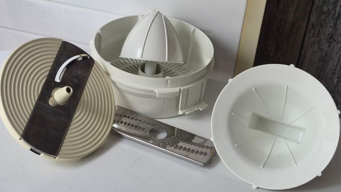Accessoires robot multifonction SEB Multi Robot Plus – Très bon état 🔪 Ensemble d’accessoires pour robot multifonction SEB, idéal pour préparer facilement vos recettes du quotidien. Complet et pratique, cet ensemble permet de râper, émincer et presser les agrumes en toute simplicité. ✔️ Marque : SEB ✔️ Modèle : Multi Robot Plus ✔️ État : très bon état ✔️ Inclus : presse-agrumes, râpeur, éminceur, hélice multifonction ✔️ Compatible avec robot SEB correspondant ✔️ Utilisation simple et efficace Un lot pratique pour gagner du temps en cuisine et varier les préparations ✨