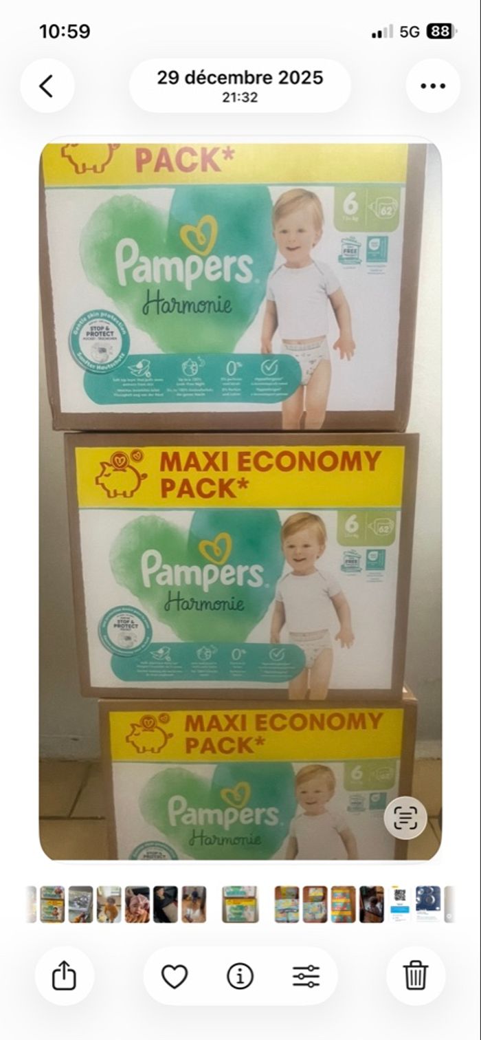 Lots de 3 cartons de couches Pampers harmonie taille 6