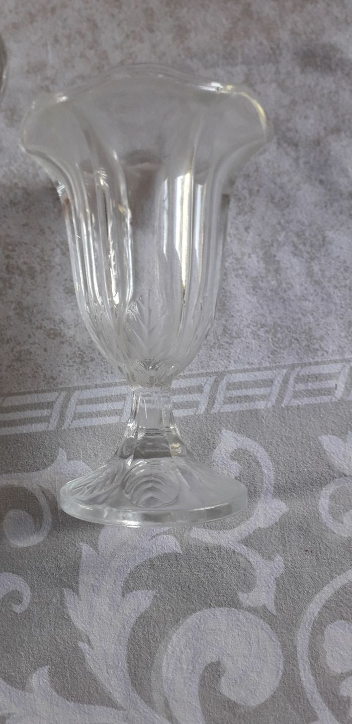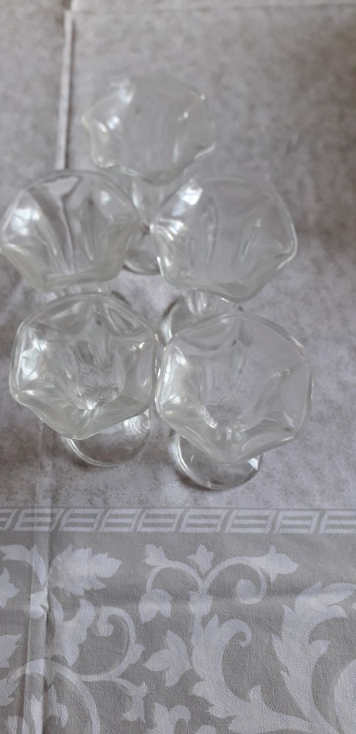 Lot de 5 coupes en verre à dessert pour glaces fruits ... très peu servi Motifs feuillages Hauteur totale 15.5 cm hauteur du contenant 10 cm diamètre en haut 9 cm