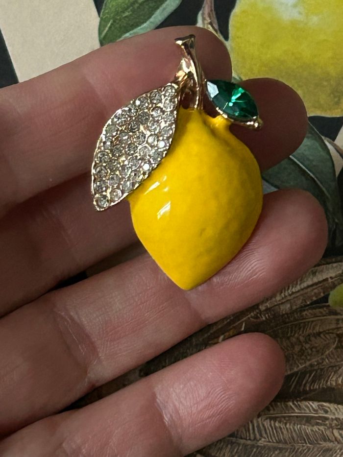 Je vends une jolie broche en émail forme citron avec strass, Cette Broche convient à tout type de vêtements manteau veste gros pull , chemises …. ,Broche décorative à porter au quotidien cette jolie broche sublimera et ajoutera un charme supplémentaire à vos tenues . Broche élégantes avec strass haute qualité , email et alliage de zinc. Occasions : Fête, Mariage, Anniversaire, Cadeaux d’anniversaire, fête des mères . Présentée dans une ravissante petite poche en organza, , Remis en main propre à Chartres proche cathédrale ou envoi rapide et soigné .