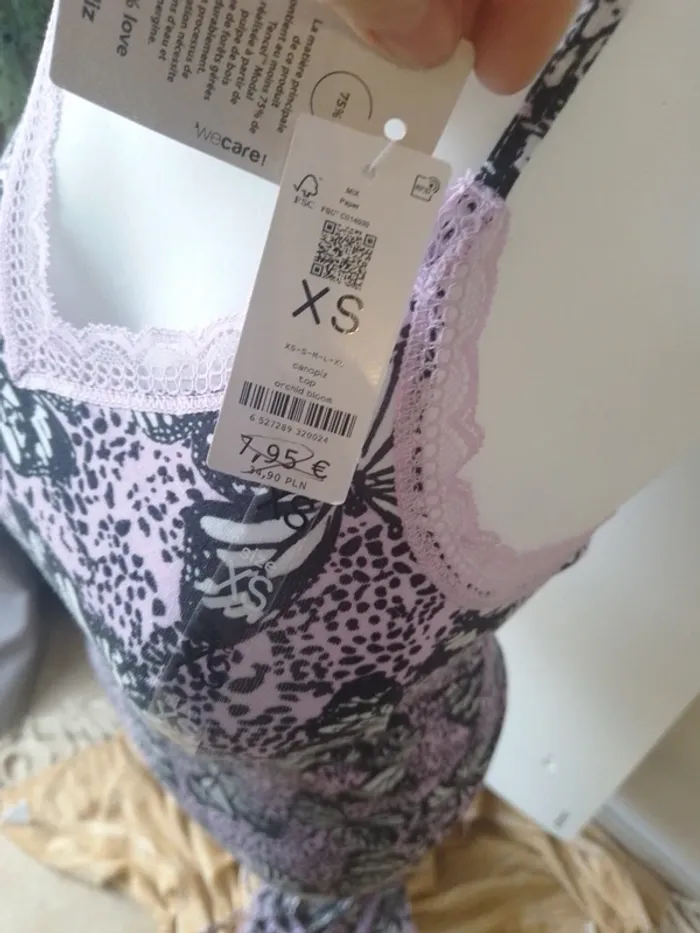 haut valeur magasin 7.99€ aisselle à aisselle 41 cm épaule au bas 53 cm bas 41 cm mais tout est trés extensible bas valeur magasin 7.99€ taille élastique de 33 cm à plus de 44 cm taille au bas 21 cm 95% modal et 5% élastane #vetementsfemmes60 #vetementsfemmesXS60