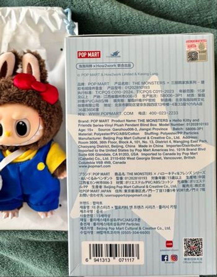 Labubu The Monsters x Sanrio Hello Kitty and Friends plush pendant Secret Hello Kitty 🎀 Neuf, boite ouverte par le bas Pop Mart