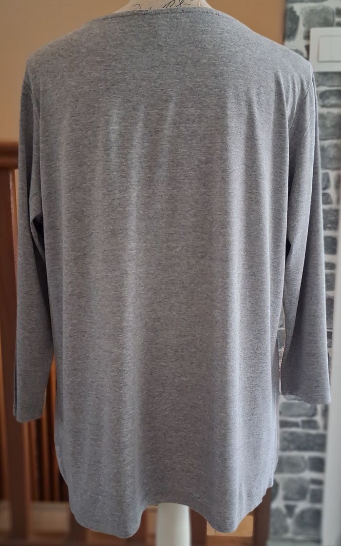 Pull fin gris imprimé avec le col argenté - photo numéro 6
