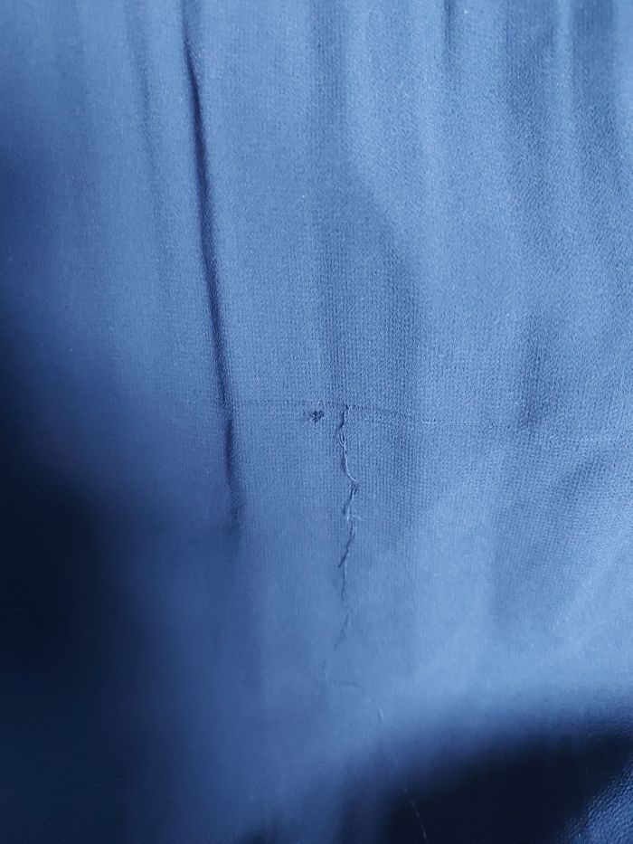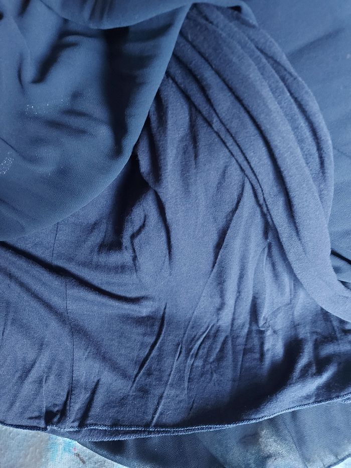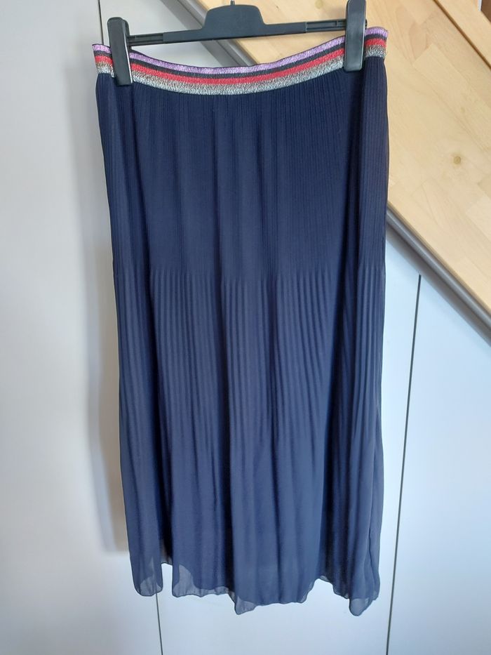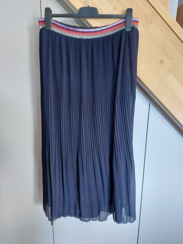 Longue jupe bleue marine, doublée, dessus voile. Taille élastique Paprika Taille L/XL, correspond taille 46 Taille à plat sans tirer 42 cm, Longueur 92 cm B état, un accroc à l'arrière