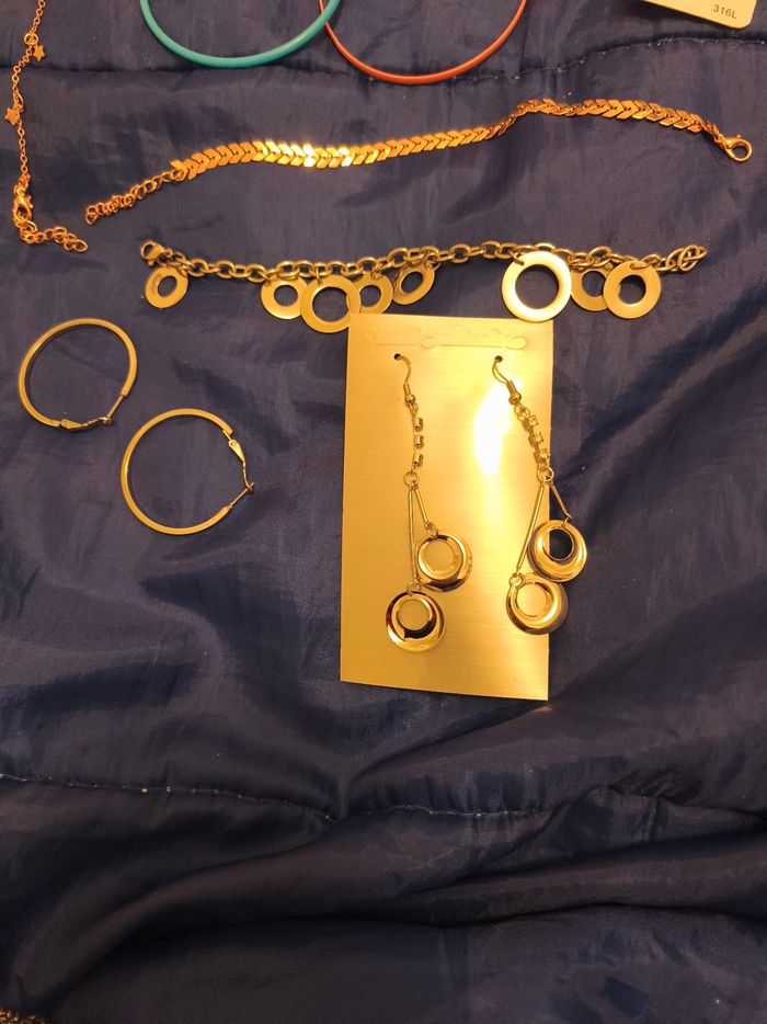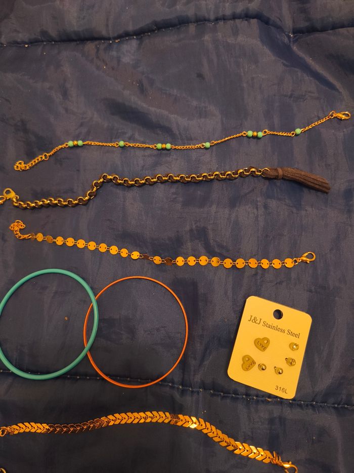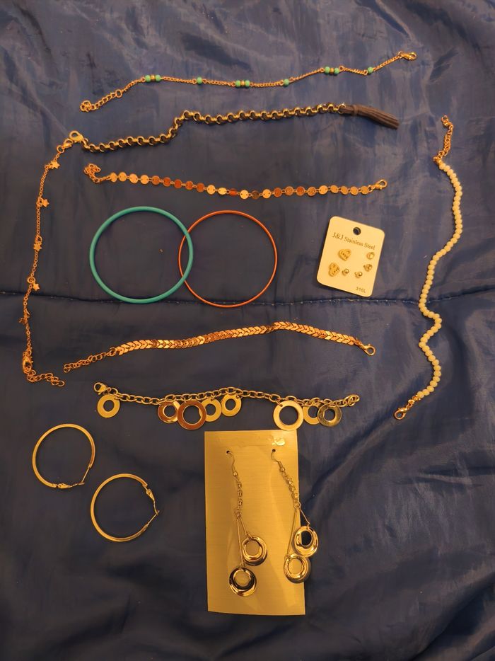 Lot de 14 bijoux.( 5 paires de boucles d'oreilles et 9 bracelets)