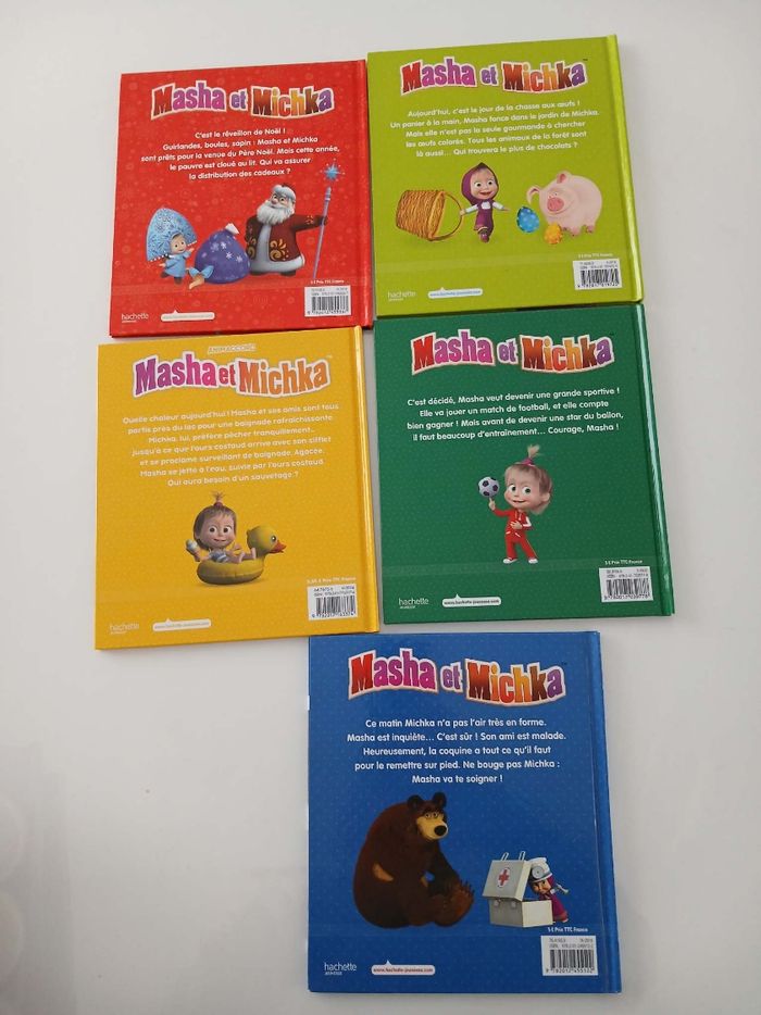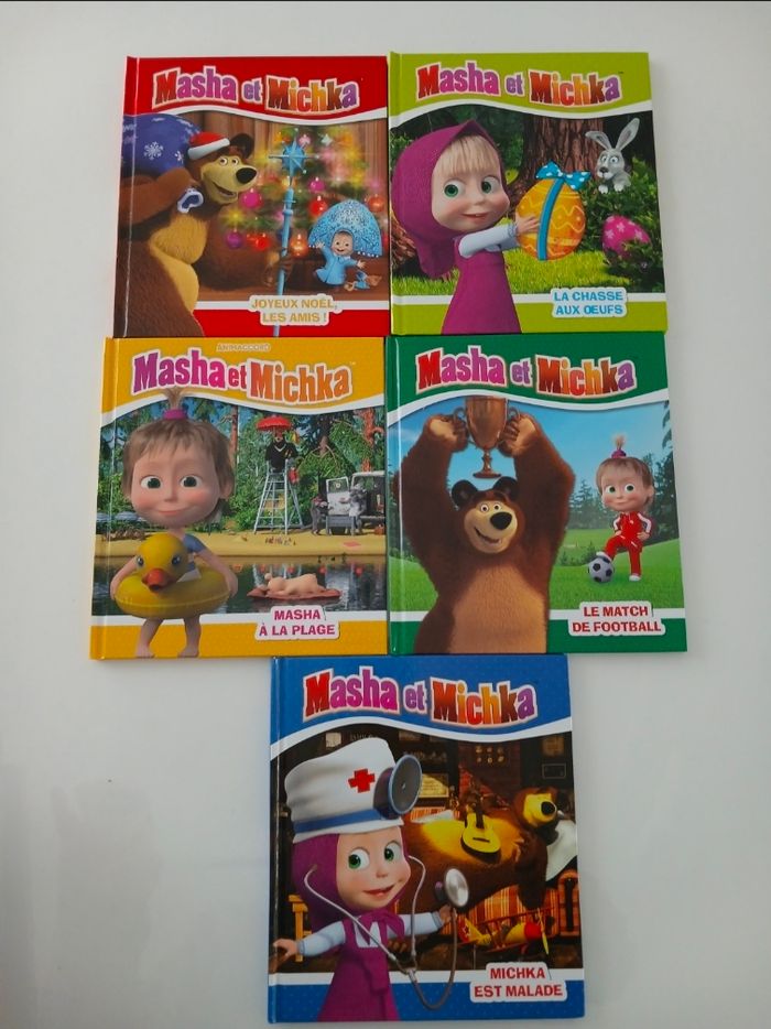 Vends un lot de 5 livres de la célèbre série Masha et Michka, publiés chez Hachette Jeunesse. Parfait pour les jeunes enfants fans du dessin animé ! ​Les histoires incluses dans ce lot sont : ​Joyeux Noël, les amis ! (Thème Noël) ​La chasse aux œufs (Thème Pâques) ​Masha à la plage (Thème été/vacances) ​Le match de football (Thème sport) ​Michka est malade (Thème docteur/soin) ​État du lot : ​Très bon état général : les couvertures sont propres et les couleurs vives. ​Intérieur impeccable : pas de déchirures, pas de gribouillages. ​Format : Couvertures rigides, solides pour les petites mains.