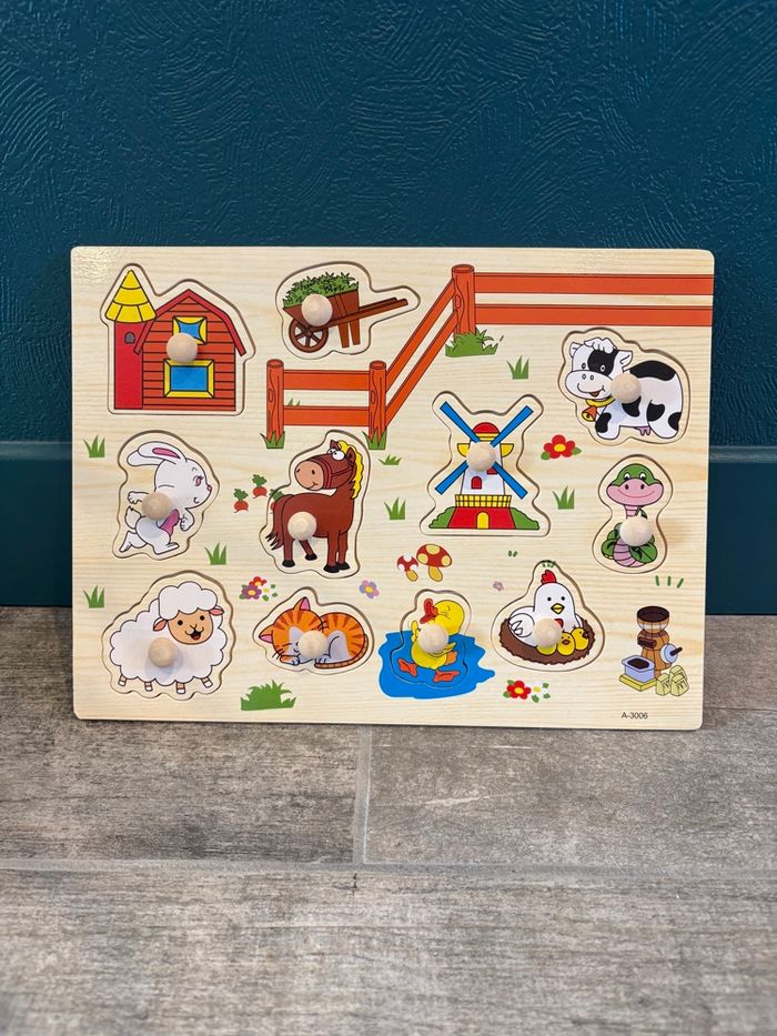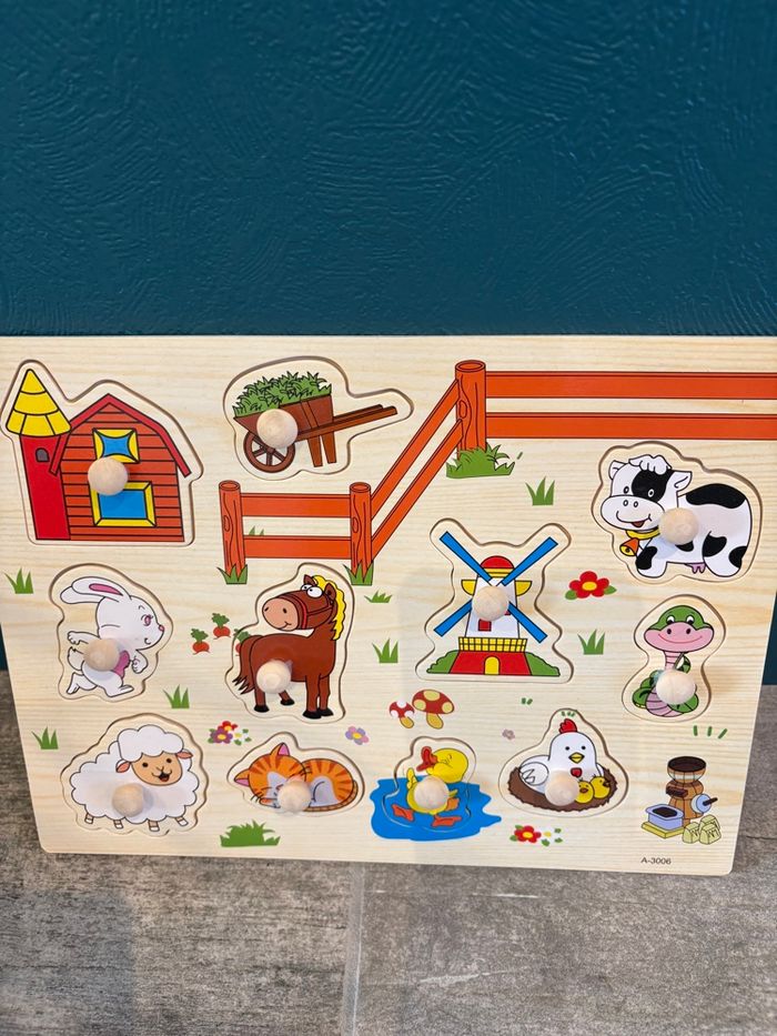 Puzzle en bois ferme à encastrer avec bouton pour que ce soit plus simple à attraper