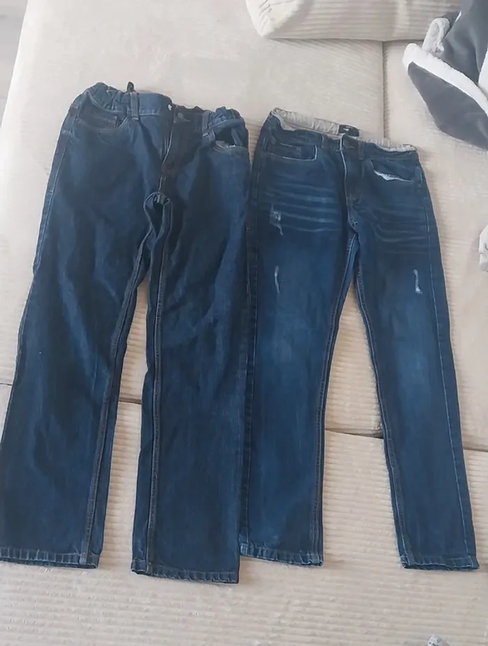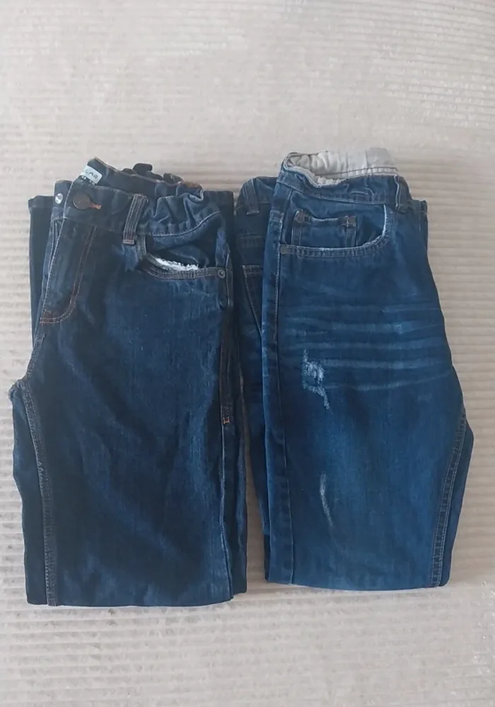 Portés 1 fois, mon fils déteste les jeans. Celui qui semble troué ne l'est pas, c'est le jean qui est comme ça. Ils ne sont pas abîmés ni tachés.