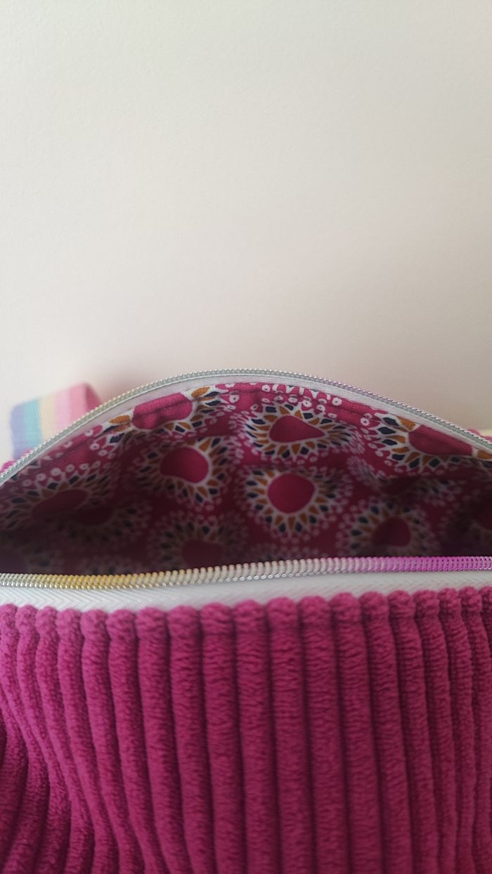 Trousse à maquillage en velours côtelé rose fait main