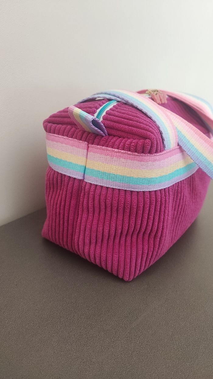 Trousse de toilette enfant en velours rose fait main