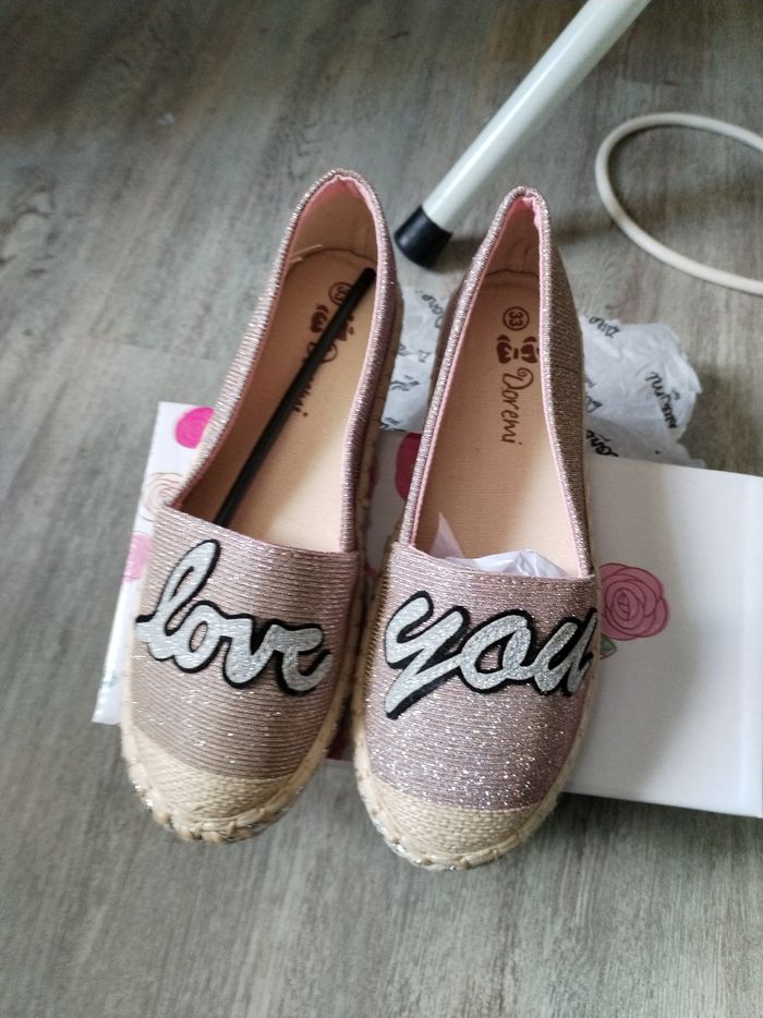 Ballerine espadrille taille 33, à paillettes qui change de couleur neuve.. Marque doré mi