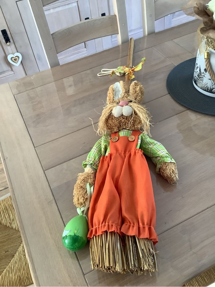 Lapin de Pâques à suspendre Très bon état Hauteur totale 1 mètre Hauteur lapin 80 cm Bois et paille