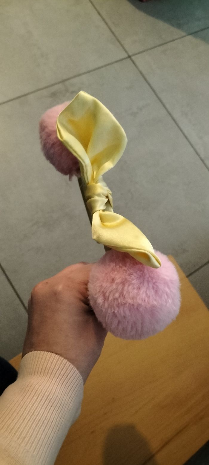 Serre tête Gros pompon rose et noeud jaune