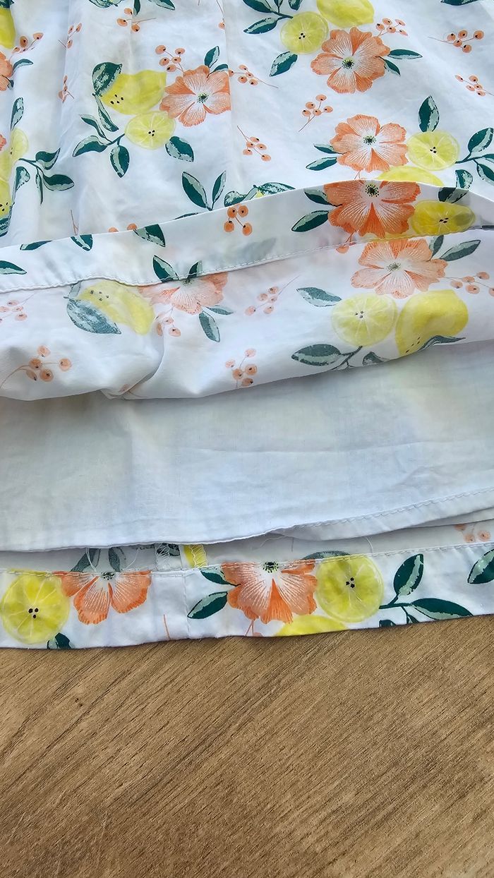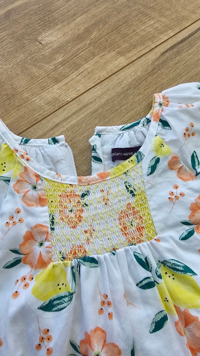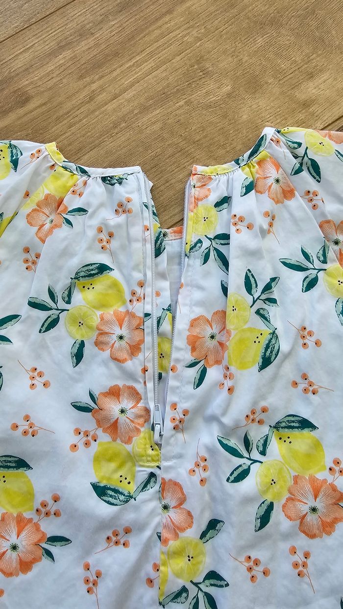 Robe 👗 sans manches été ☀️ 🎨 Blanc motif citron 🍋 et fleur 🌸 📍 Col rond 📍 Fermeture dans le dos 📍 Doublure en coton 📏 3 ans-98cm #harmonie1017fille3ans