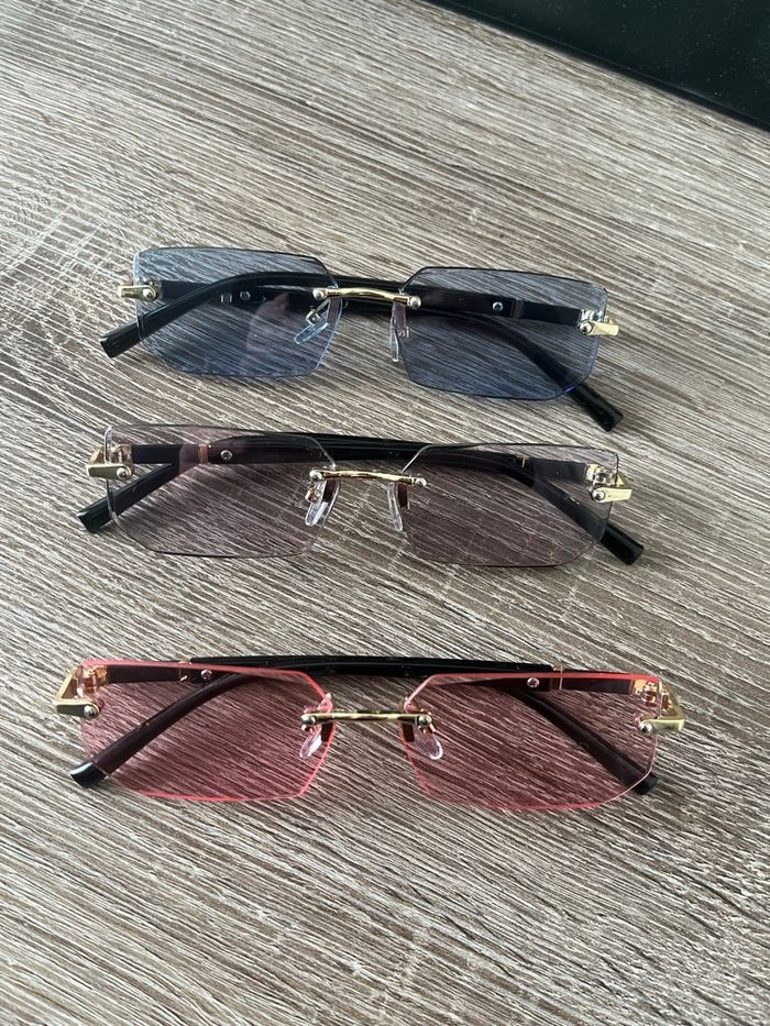 Lunettes de soleil de plusieurs couleurs ( bleu , violet rose ) avec les branches noires et dorées en excellent état 🌟 Lunettes neuves 👍🏽 N’hésitez pas à m’envoyer un message pour plus d’informations 😉