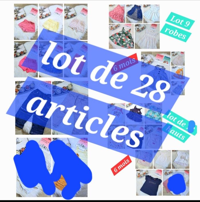 #6moisilyana Lot de 28 articles en très bon état pour la plupart ou bon état 6 mois composé : - 10 hauts - 9 robes - 4 Shorts - 2 Pantalons - 1 Jupe - 1 legging - 1 maillot de bain ⚠️ En vente à l'unité ou petit lot dans mon dressing pour avoir plus de photos et détails ne pas acheté avec autre 6 mois ⚠️ #robe #fille #6mois #groslot #lot #haut #Teeshirt #short...