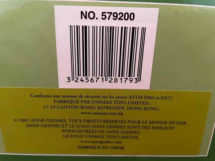 Vintage 2005 Anne Geddes, photographe de renommée internationale "Ce jouet fait partie d'une collection inspirée par son livre "Down in the Garden", meilleure vente du New York Times Matériau Plastique, peluche Personnage Anne GEDDES Bébé décoratif Anne Geddes Longueur du bébé : ~20 cm. La boîte est un peu défraîchie.