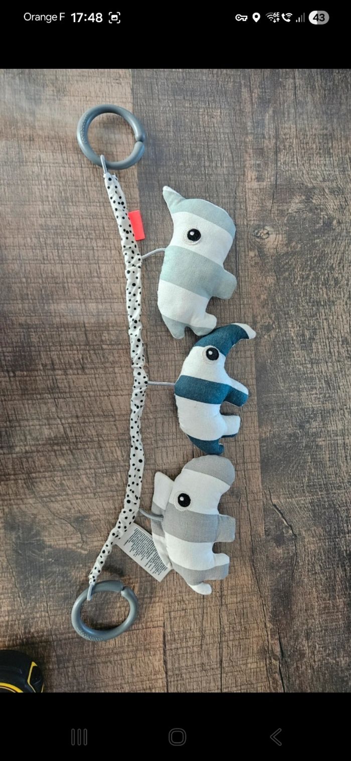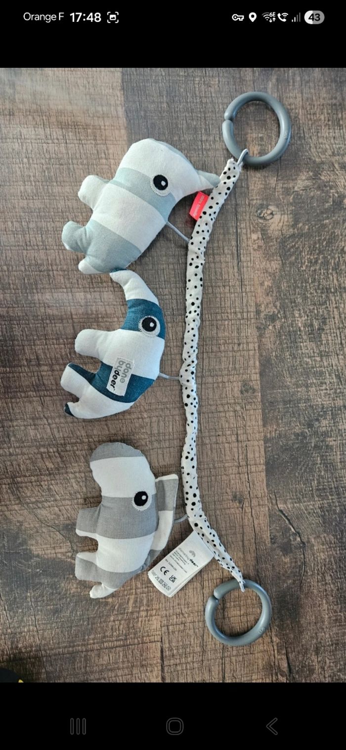 Doudou d’activités spirales éléphant bleu Bébérêve Casino pour poussette bébé, parc, cozy