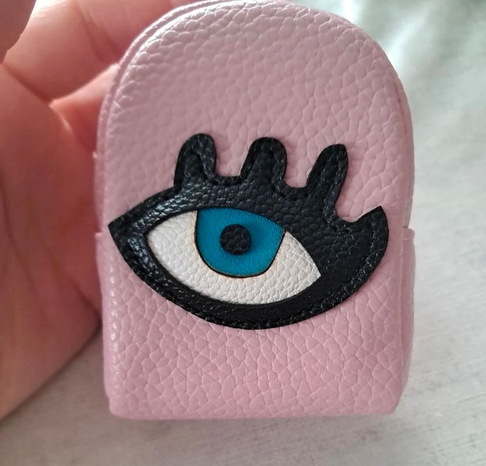 porte monnaie porté clé couleur rose clair oeil noir neuf avec étiquette hauteur 9 cm largeur 5 cm.