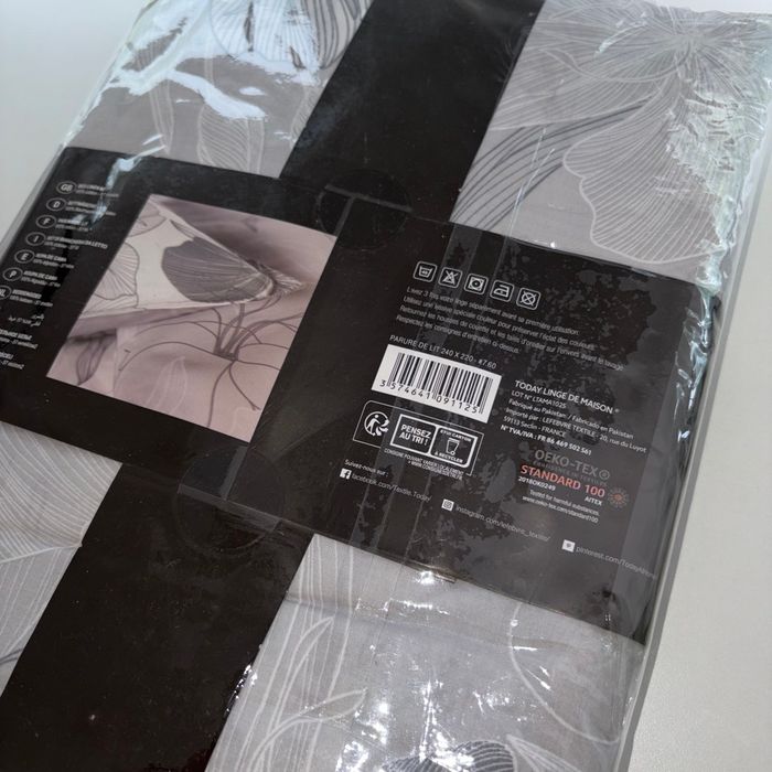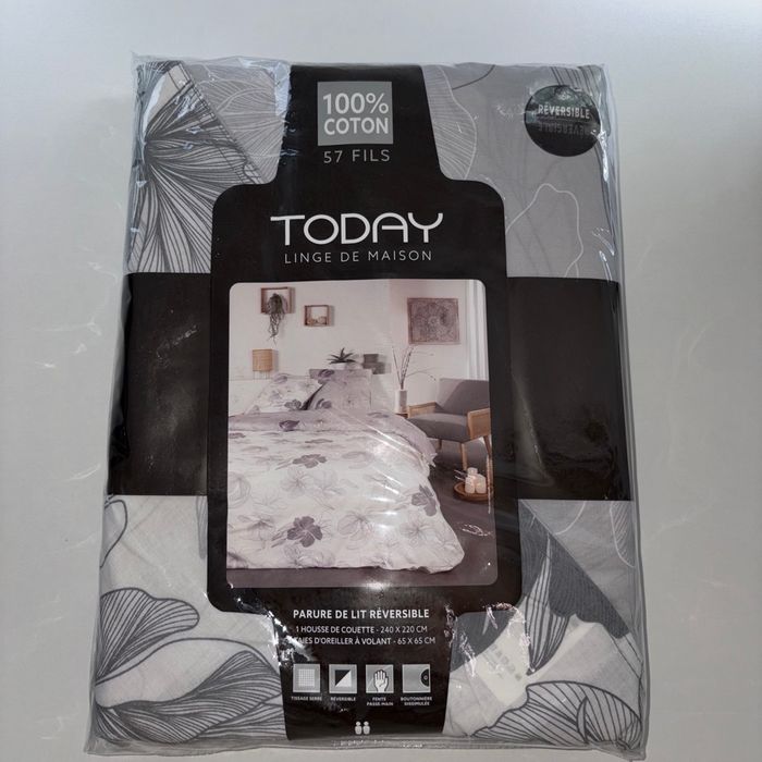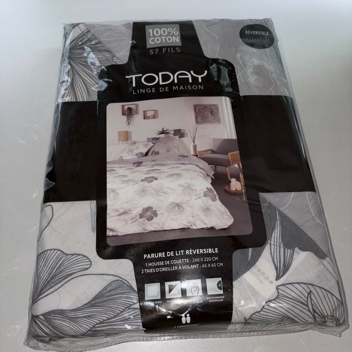 Parure de lit neuve jamais mise 220/240 avec 2 taie d'oreiller 100% coton