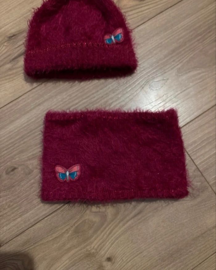 ensemble bonnet gants écharpe la reine des neiges rose violet