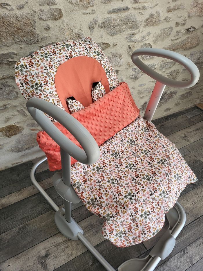 Housse qui s'ajoute à l'assise d'origine du transat up and down de béaba. Accessoires sangles et entre jambe assortis Couverture amovible adaptée et assortie. Lavable en machine à 30°. Page fb Zol&Saan confections Insta zolsaan Site internet Zolsaanconfections.com