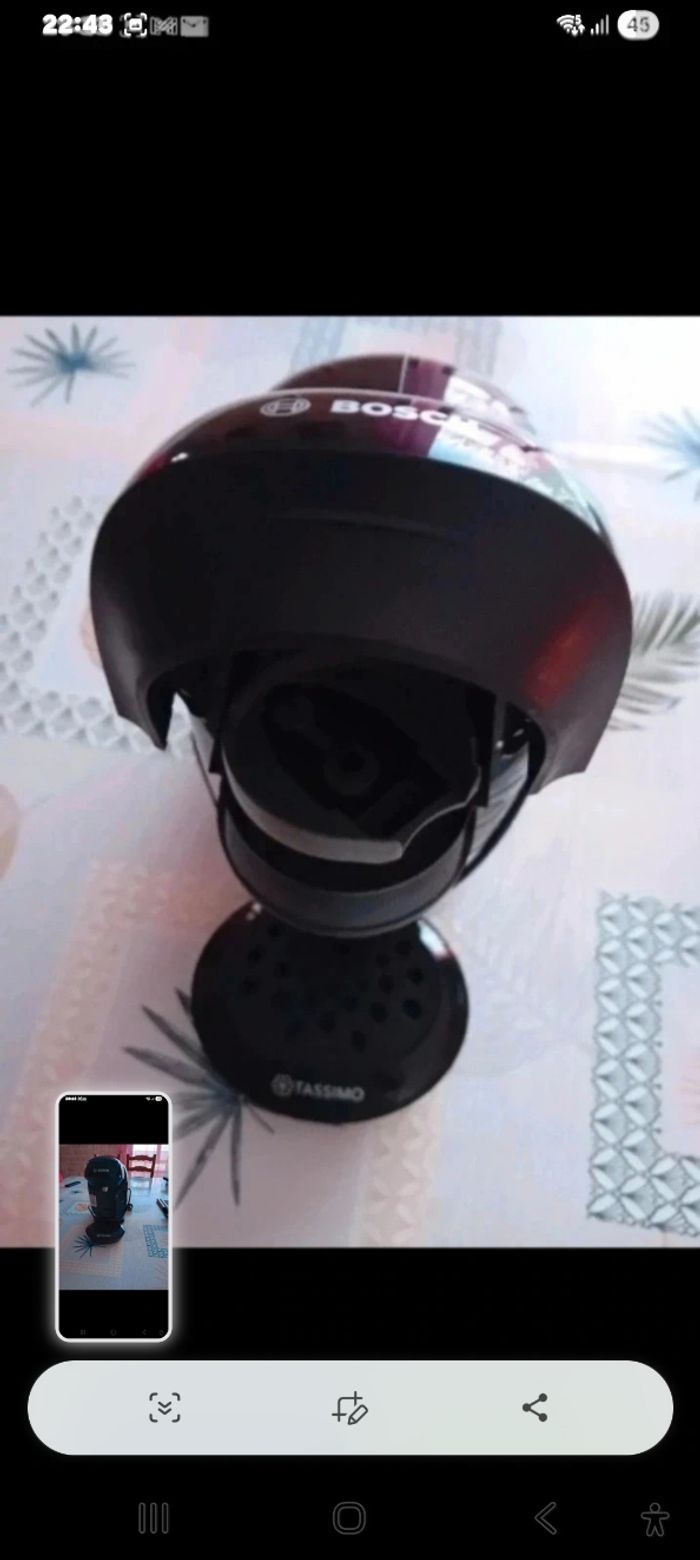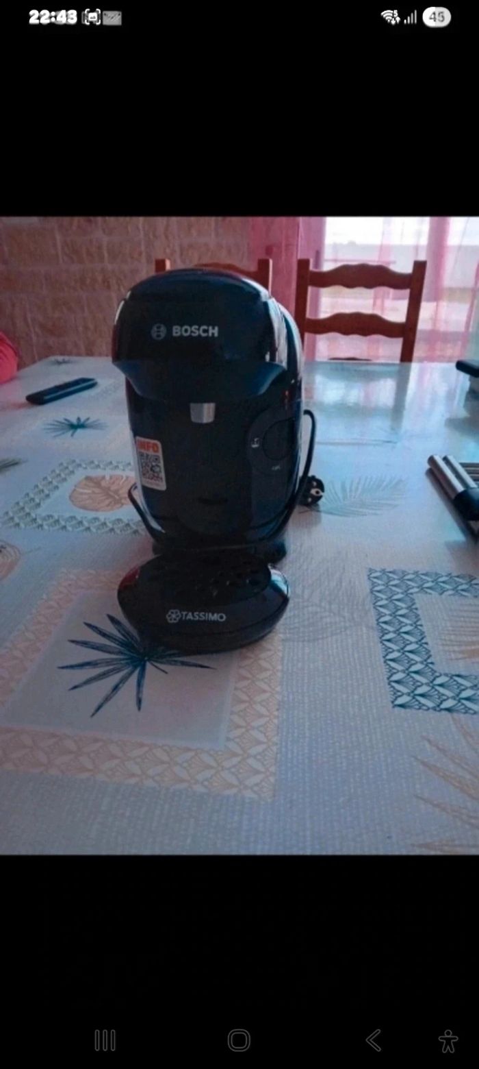 Captière à dosette thasimo Fonctionne parfaitement Je la revend car j'ai deux cafetières😄😄 Prix vente magasin 80€.