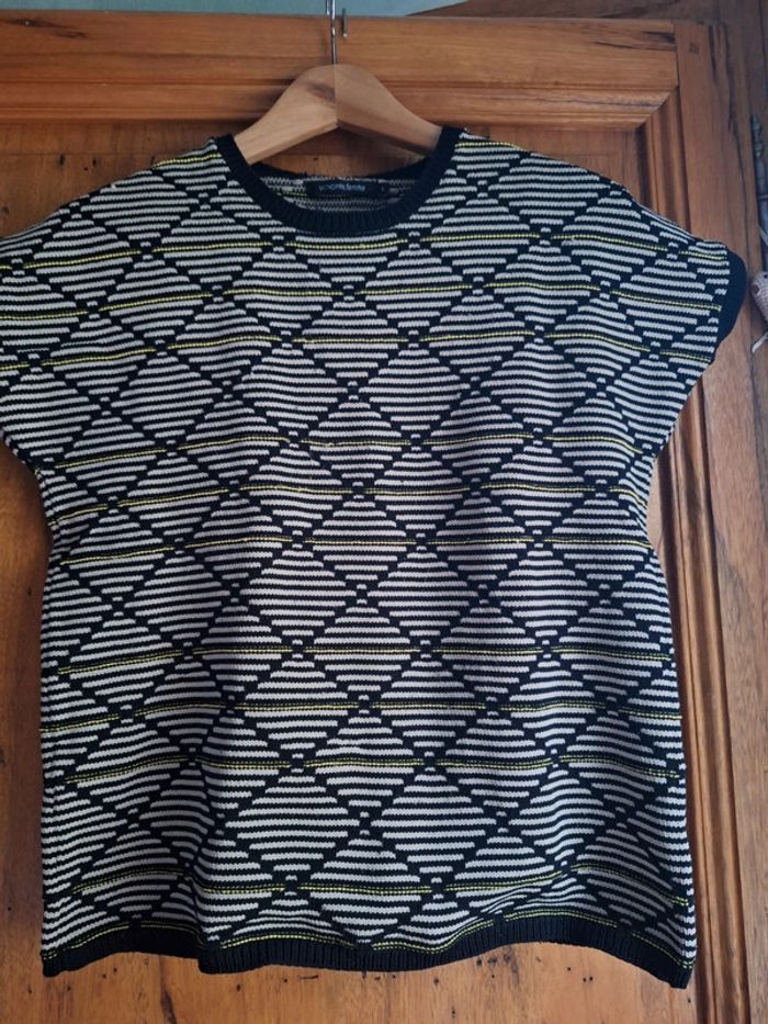 Petit haut bordeaux avec des fleurs ajourés et pompons