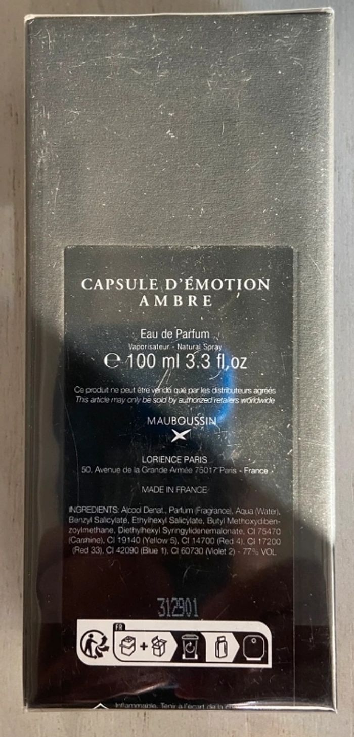 Bonjour Je vends un parfum de la marque Mauboussin . Il est neuf et n'a jamais été déballé . - Mauboussin Eau de parfum Capsule d'émotion Ambre 100ml Prix : 55€ Merci