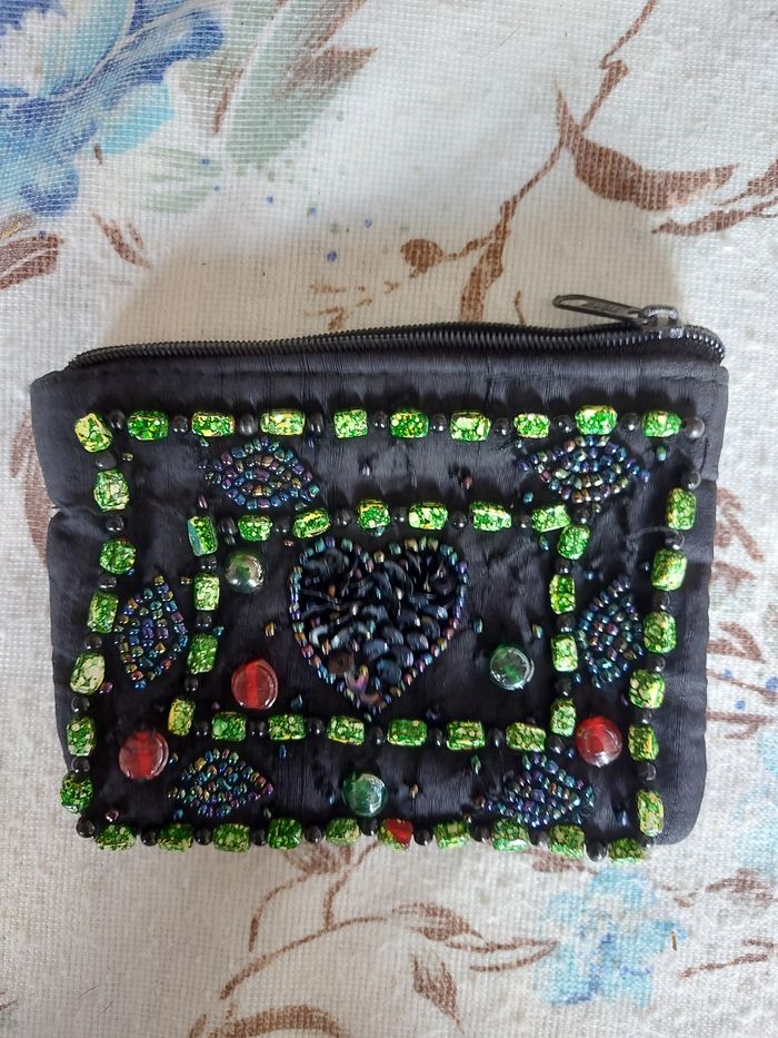 Petite trousse/porte monnaie, noir avec perles. Manque quelques petites perles, peu visible Arizona 12 x 9 cm B état