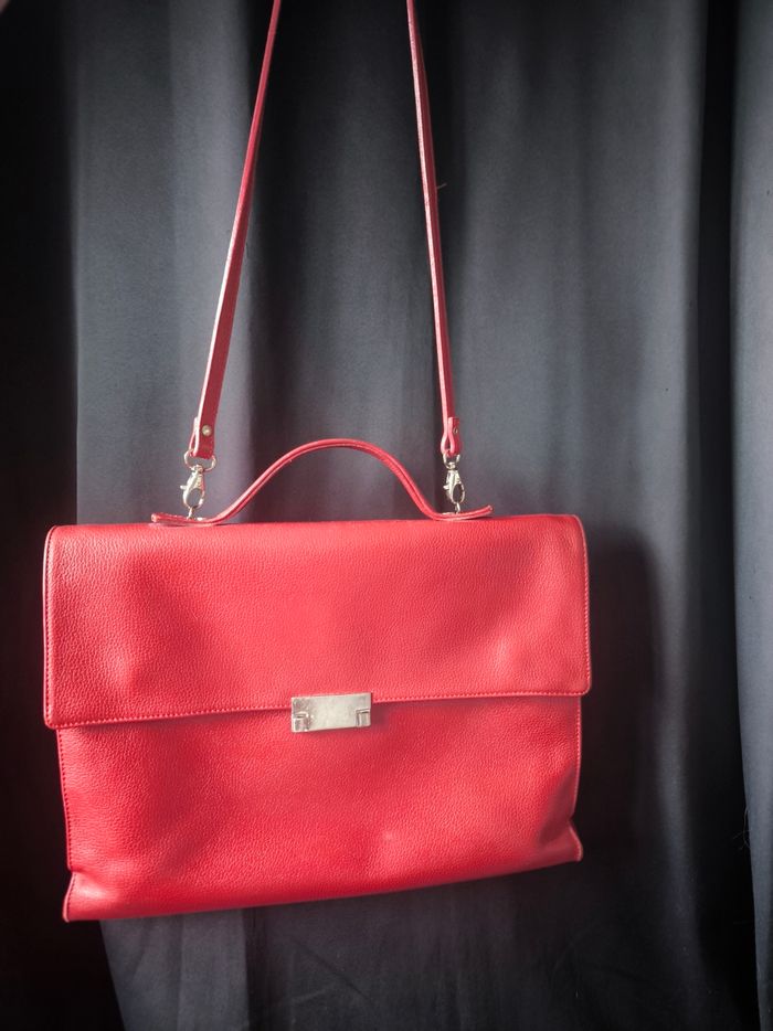 Sacoche Vintage en cuir grainé bordeaux avec bandoulière