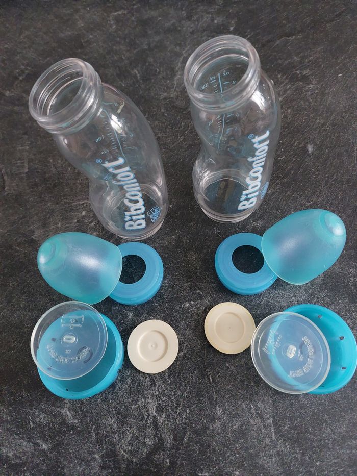 Vend lot de 2 biberons Marque bébé confort Contenance 240 ml Démontable Marques d'usures