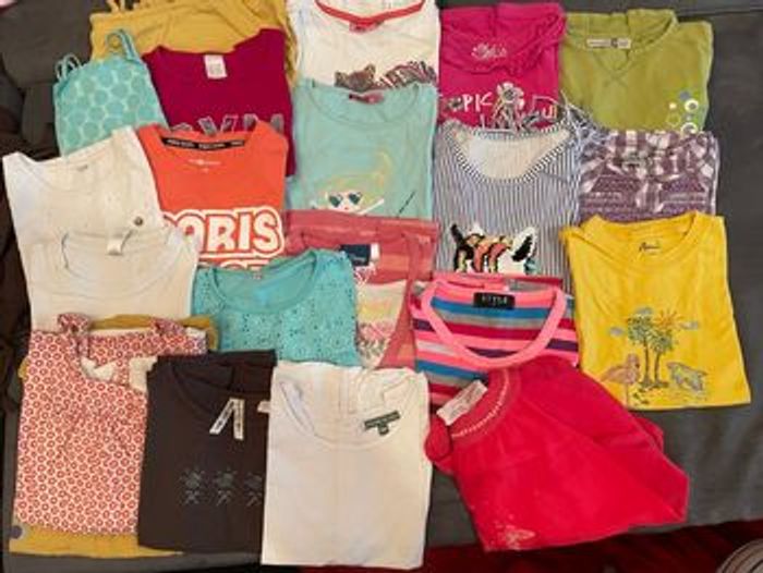 Gros lot de 21 t-shirts fille 8 ans, tous en très bon état Diverses marques : DPAM, TAO, NKY, Okaïdi….