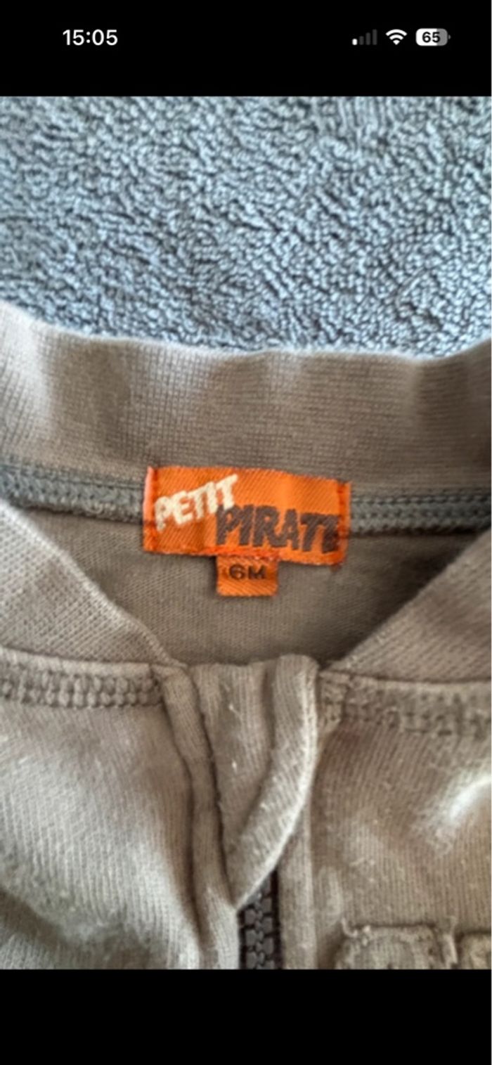 Veste zip marque petit pirate taille 6 mois