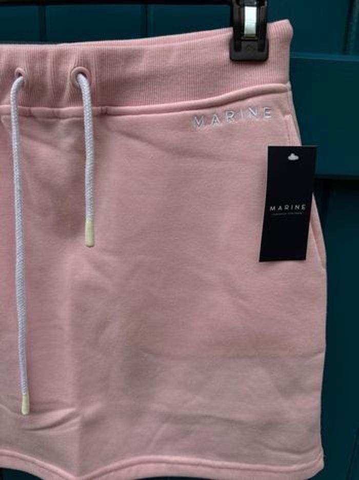 Jolie jupe d’été sportswear,très confortable et douce, taille élastique avec cordon de serrage, 2 poches côté. Neuve avec étiquette