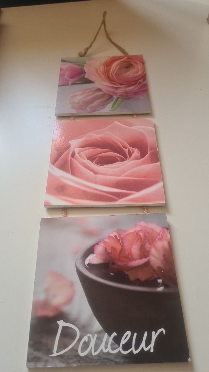 Décoration mural 3 petits cadre florale S'accroche avec la corde