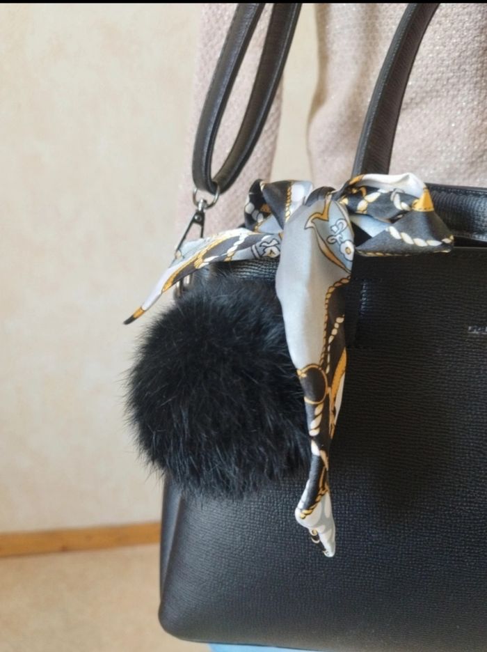 Sac a main Gallantry noir e avec son pompon et tissus style foulard N'a servi que 1 fois État neuf Envoie rapide et soigné