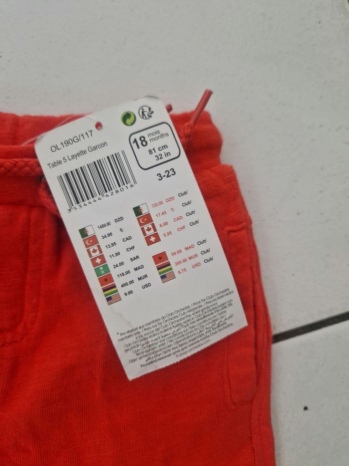 Bermuda corail Taille 18 mois Neuf avec étiquette Orchestra