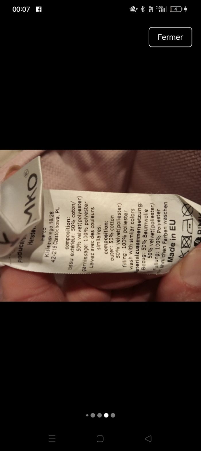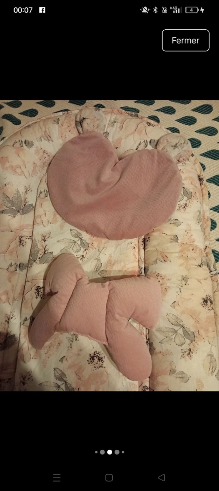 Parfait état gris et rose poudré Un côté en côte et l'autre en tissu velour Vendu complet avec. Les coussins couverture ect Pimko