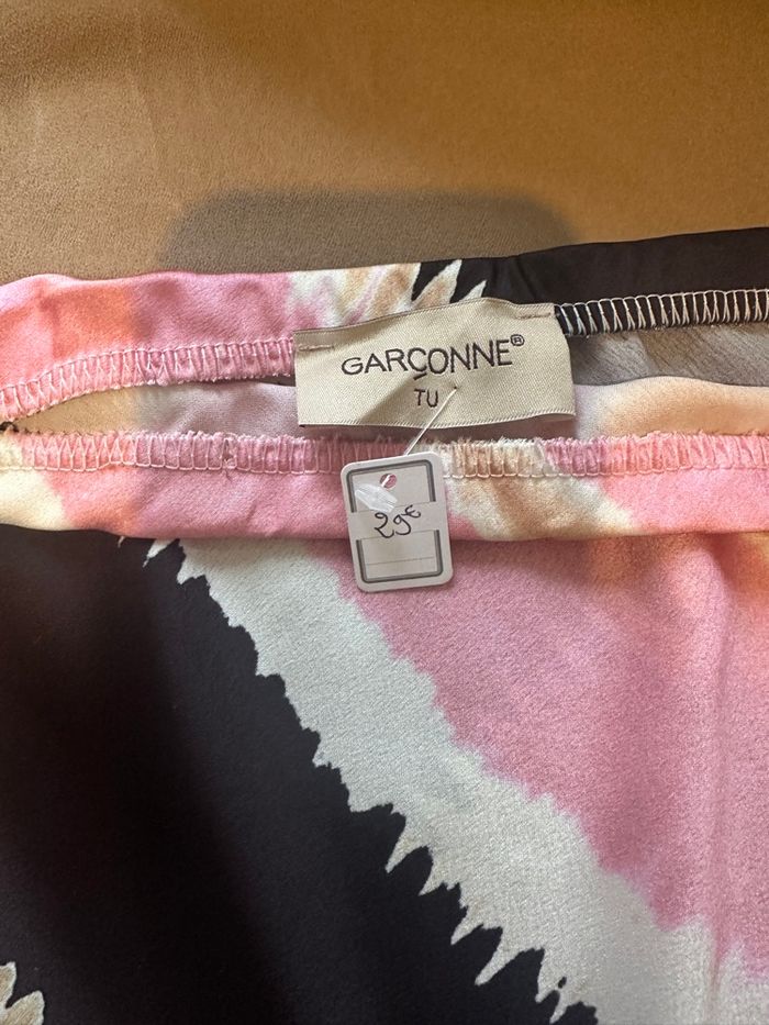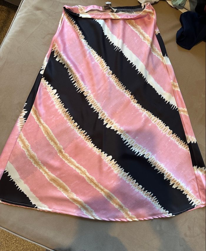 Jupe satinée Neuve Dominante de rose et noire Longue Taille unique mais convient une taille 36/38 Disponible sur Rouen et alentours ou envoi par colis