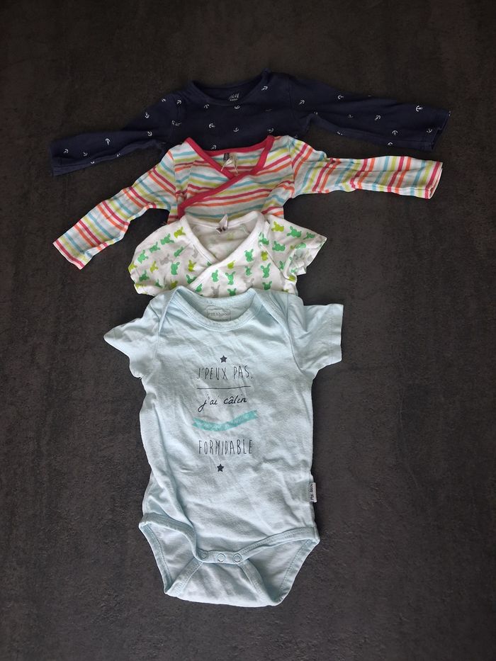 Lot 3 bodies manches longues 1 mois - Kiabi - comme neufs