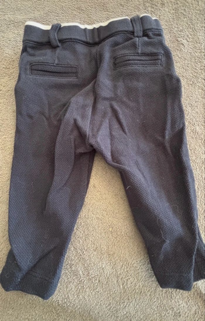 Joli pantalon Grain de Blé, taille 6 mois, en tissu effet gaufré. Couleur gris foncé, avec liens intégrée, poches avant et coupe confortable. En très bon état, parfait pour un look cosy et élégant. ✔️ Confortable et agréable à porter ✔️ Style chic et facile à assortir