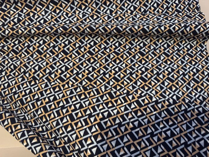 Jolie jupe à motifs géométrique dans les tons bleu marine, bleu ciel et jaune orangé Taille 46 / Taille 48 Marque Damart Neuf