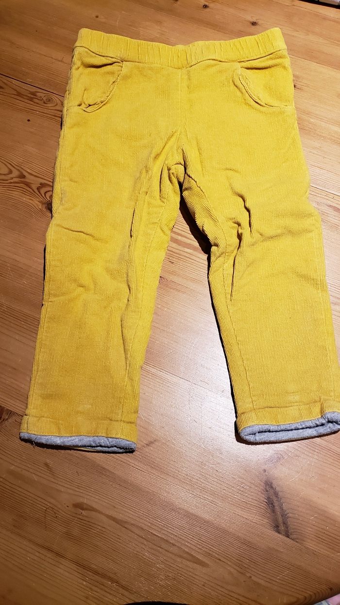 Pantalon 24 mois assez epais et chaud. Velours jaune. Bon état